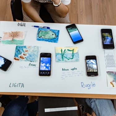 Gamta, piešiniais, istorijų užrašymais, tekstai skaitymas, nuotraukomis, skirtinga vaizduote, nuomone.